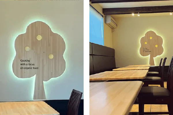 「種をまく」という店舗のコンセプトから、自然を感じられる内装になりました。壁の草や、凹凸など驚く案を出していただき、どんな感じになるのだろうとわくわくしました。追加で棚を作成していただきましたが、コンセプトから外れることなく、統一感のあるものを作成していただきました。お客様にも好評で、市販のものではなく手作りしたものだと伝えると毎回驚かれます。